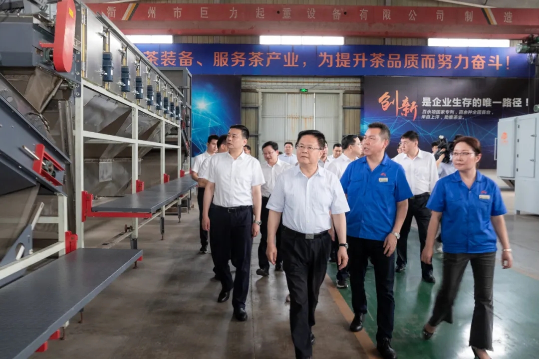 11月30日,中國國際茶文化研究會副會長丁世明、衢州市政協(xié)副主席琚建軍、中國農(nóng)業(yè)科學院茶葉研究所研究員魯成銀等專家領(lǐng)導一行蒞臨上洋機械現(xiàn)場考察,一起為衢州百億茶產(chǎn)業(yè)發(fā)展把脈問診,共話"三茶統(tǒng)籌"發(fā)展新機遇。